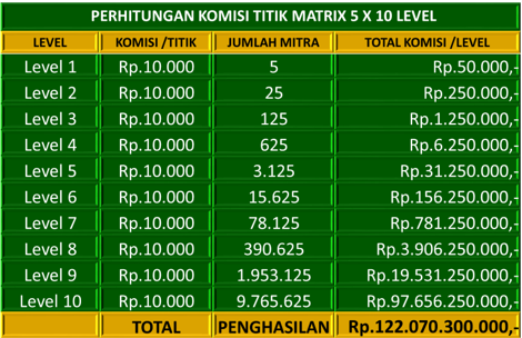 Hasil di atas adalah jika terjadi 5 matrix sempurna atau pertumbuhan jaringan anda 100% berhasil.